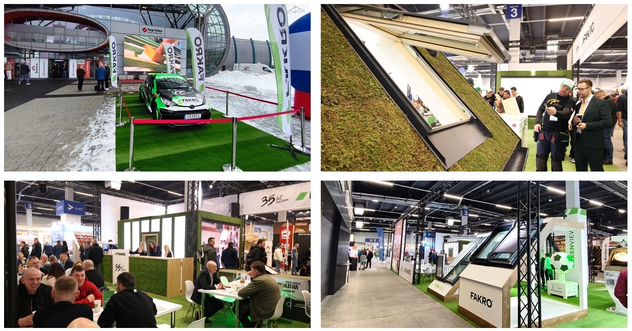 FAKRO zaprezentowało swoje rozwiązania na dużym, nowoczesnym stoisku, które przez dwa dni targów było miejscem intensywnych spotkań, rozmów branżowych oraz prezentacji produktów. Istotnym elementem obecności firmy były dwudniowe pokazy dla dekarzy w Strefie Rzemiosła, realizowane bezpośrednio na stoisku FAKRO. Odwiedzający mieli możliwość obserwowania pracy fachowców na żywo, poznania zasad montażu oraz praktycznego wykorzystania nowoczesnych rozwiązań dachowych. Duże zainteresowanie wzbudzała także makieta zielonego dachu, wykonana przez zespół DANBUD – Daniel Grabowski, prezentująca system montażu i obróbki blacharskiej zielonego dachu spadzistego.