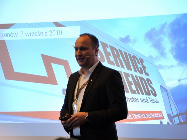 Rozwój usług serwisowych był kolejnym tematem prezentowanym przez Roto. Gość specjalny dr Christian Faden (na zdjęciu poniżej), Prezes Roto Professional Services GmbH, przedstawiał aktualne dane z rynku krajów niemieckojęzycznych. Zdaniem eksperta zmiana oczekiwań użytkowników okien, nowe standardy w obszarze większego komfortu i bezpieczeństwa wymagają niezbędnych ulepszeń. Na rynku niemieckim niemal 90% okien i drzwi nie ma zabezpieczeń przeciwwyważeniowych, zgodnych z wymogami obecnych klasyfikacji antywłamaniowej RC. Doposażenie okien w trakcie eksploatacji jest dużym wyzwaniem technicznym. Biorąc pod uwagę aktualne potencjał rynku wynoszący 587 mln okien wymagających ulepszeń – okres realizacji przy obecnym potencjale firm wyniósłby 40 lat – mówił ekspert. Odpowiedzią na te potrzeby jest nowy kierunek rozwoju Roto. Firma wprowadza usługę kompleksowego serwisu, oferowaną producentom stolarki.