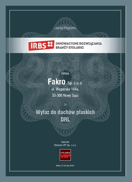 Wyłaz DRL to produkt wyróżniony w programie IRBS – Innowacyjne Rozwiązania Branży Stolarki. Wyłaz DRL to innowacyjne rozwiązanie pozwalające na wygodne i bezpieczne wyjście na płaski dach z wnętrza budynku, które zostało wyróżnione w Programie Innowacyjne Rozwiązania Branży Stolarki. Konstrukcja oraz rozmiary wyłazu DRL umożliwiają połączenie go ze schodami strychowymi tworząc kompleksowe rozwiązanie w zakresie dostępu do dachu płaskiego.