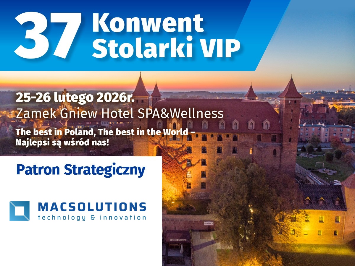 Jak dodaje Grzegorz Cendrowski: „Cieszymy się, że MACSOLUTIONS dołącza do grona Patronów 37. Konwentu Stolarki VIP. Ich obecność pokazuje, że przyszłość branży opiera się na automatyzacji, robotyzacji i cyfrowym planowaniu produkcji. Tematy takie jak optymalizacja procesów, zwiększenie wydajności o 15–25% czy redukcja kosztów produkcji nie są już jedynie trendami – to realne narzędzia, które pozwalają firmom skutecznie konkurować. Nasz Konwent to miejsce, gdzie praktyczna wiedza technologiczna spotyka się z biznesowymi decyzjami, wspólnie wyznaczając kierunek rozwoju rynku stolarki otworowej.”
