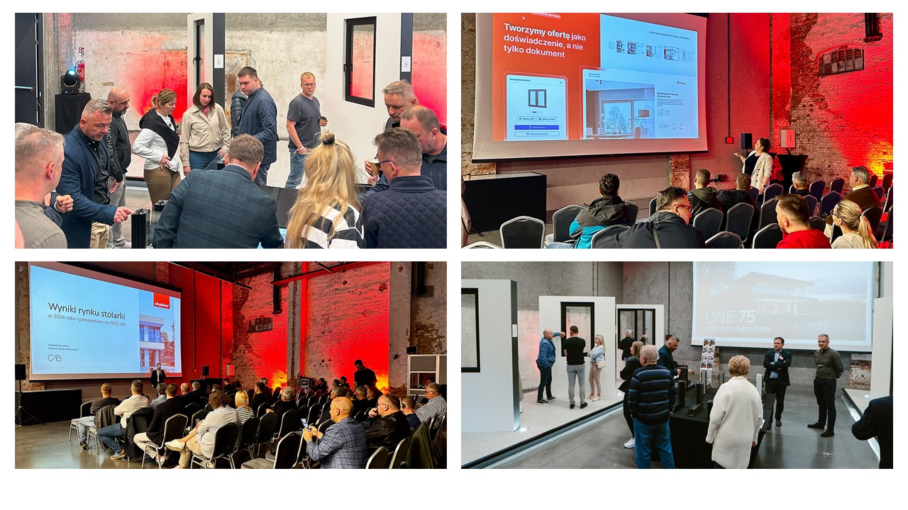 Po raz pierwszy w Polsce zaprezentowaliśmy nasz nowy system profili aluminiowych ONE 75. Maksymilian Miros z Centrum Analiz Branżowych przedstawił aktualne dane o rynku stolarki w Polsce i Europie – eksport, struktura rynku, główne kierunki rozwoju.
