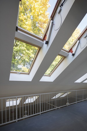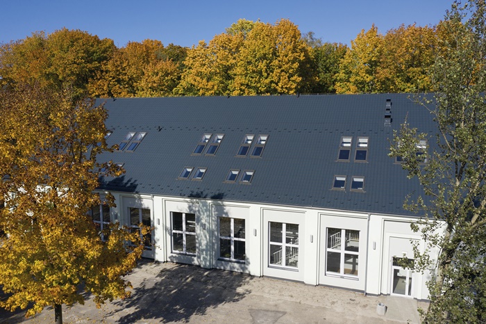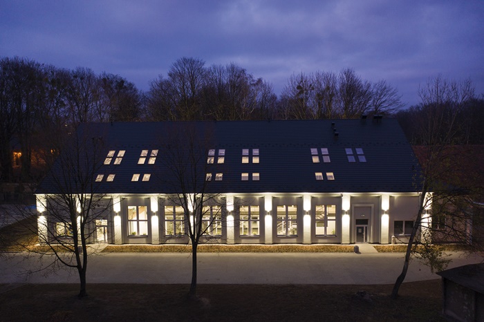 Odnowiony budynek GCE wygląda z zewnątrz świeżo i stylowo. Patrząc na niego, widzimy stonowane kolory, czystość i elegancję. Okna dachowe osadzone na odpowiedniej głębokości nie zakłócają estetyki dachu i efektownie ubogacają cały efekt wizualny.