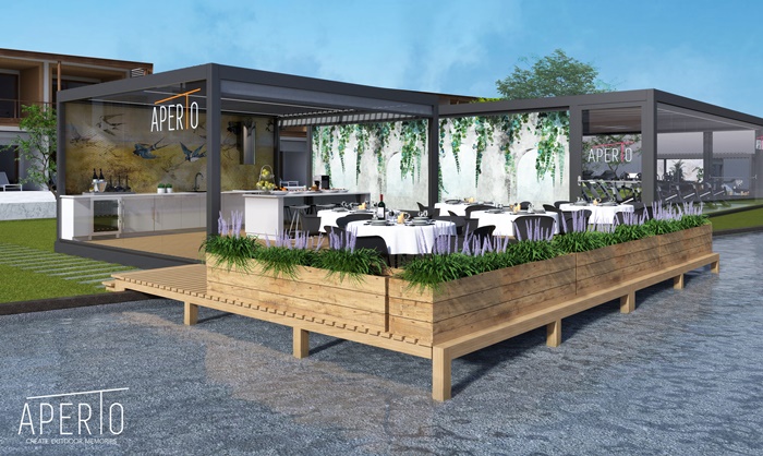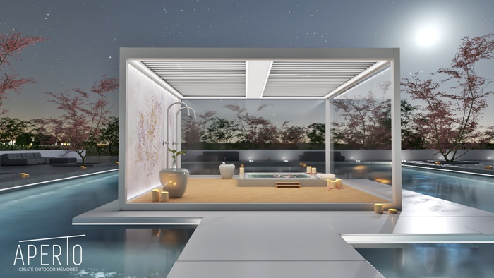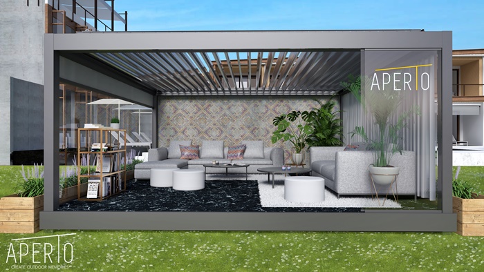 Nazwa Aperto, wywodzi się z języka włoskiego i oznacza dosłownie “otwarte”. To pomysł, który zakłada stworzenie otwartej przestrzeni na zewnątrz, która będzie funkcjonować jak “przedłużenie” domu. Dzięki elastycznie konfigurowanym wariantom zadaszeń i przeszkleń, we współpracy z włoskimi markami - Corradi i Shadelab - można wydzielić strefy o konkretnym przeznaczeniu.