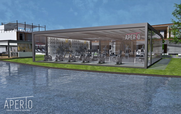 Ostatnia ze stref jest dedykowana dla ludzi aktywnych fizycznie, którzy marzą o całorocznej siłowni we własnym ogrodzie. To także rozwiązanie, które może sprawdzić się w otoczeniu hoteli - jako uzupełnienie siłowni wewnętrznej, czy po prostu przestrzeń do uprawiania fitnessu czy jogi. Wszystkie te zastosowania przekonują do tego, że Aperto to innowacyjny i niespotykany dotąd w Polsce pomysł na zagospodarowanie otoczenia poza domem, które mimo wszystko może stać się strefą o przeznaczeniu “mieszkalnym”. Przewagą tego rozwiązania jest pełna personalizacja - zarówno samego zadaszenia, jak i aranżacji stworzonego w ten sposób “wnętrza”. Tak zrodził się pomysł na Aperto Wall - propozycję personalizowania ścianek pergoli strukturalną okładziną ścienną. Dzięki wykorzystaniu okładziny można odnieść wrażenie, że strefy Aperto stają się jeszcze przytulniejsze.