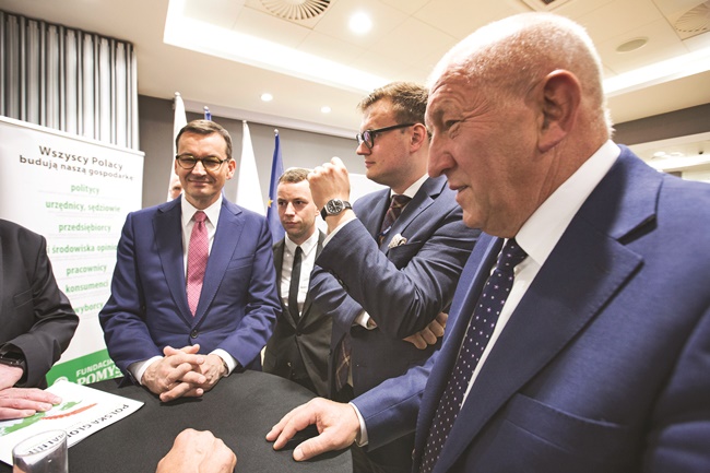 Na zdjęciu od lewej premier Mateusz Morawiecki, pierwszy z prawej prezes Ryszard Florek z Fakro